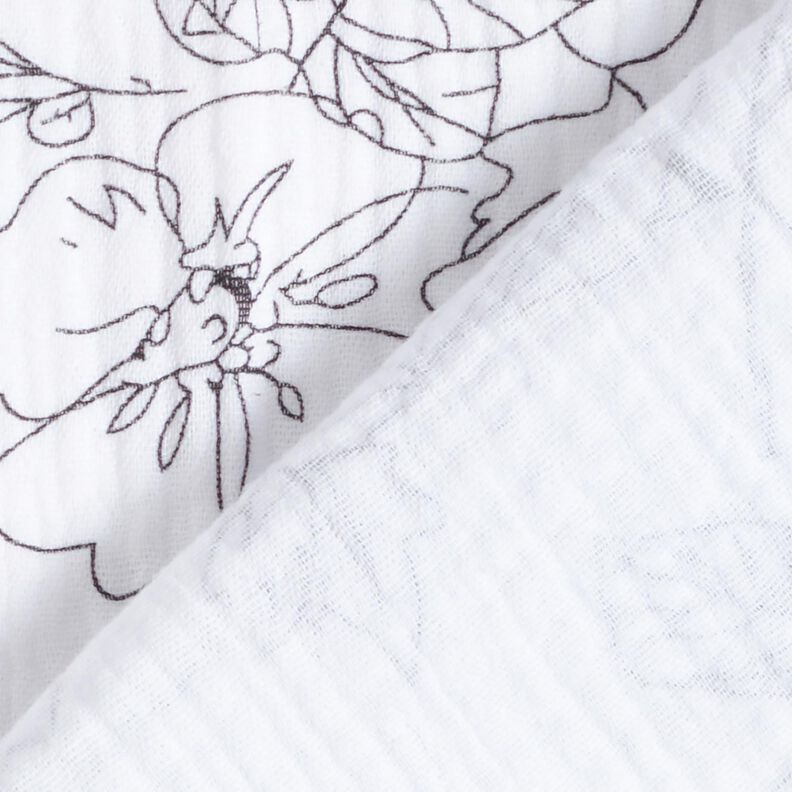 Mušelín / dvojitá mačkaná tkanina Malovaná květinová louka – bílá/černá