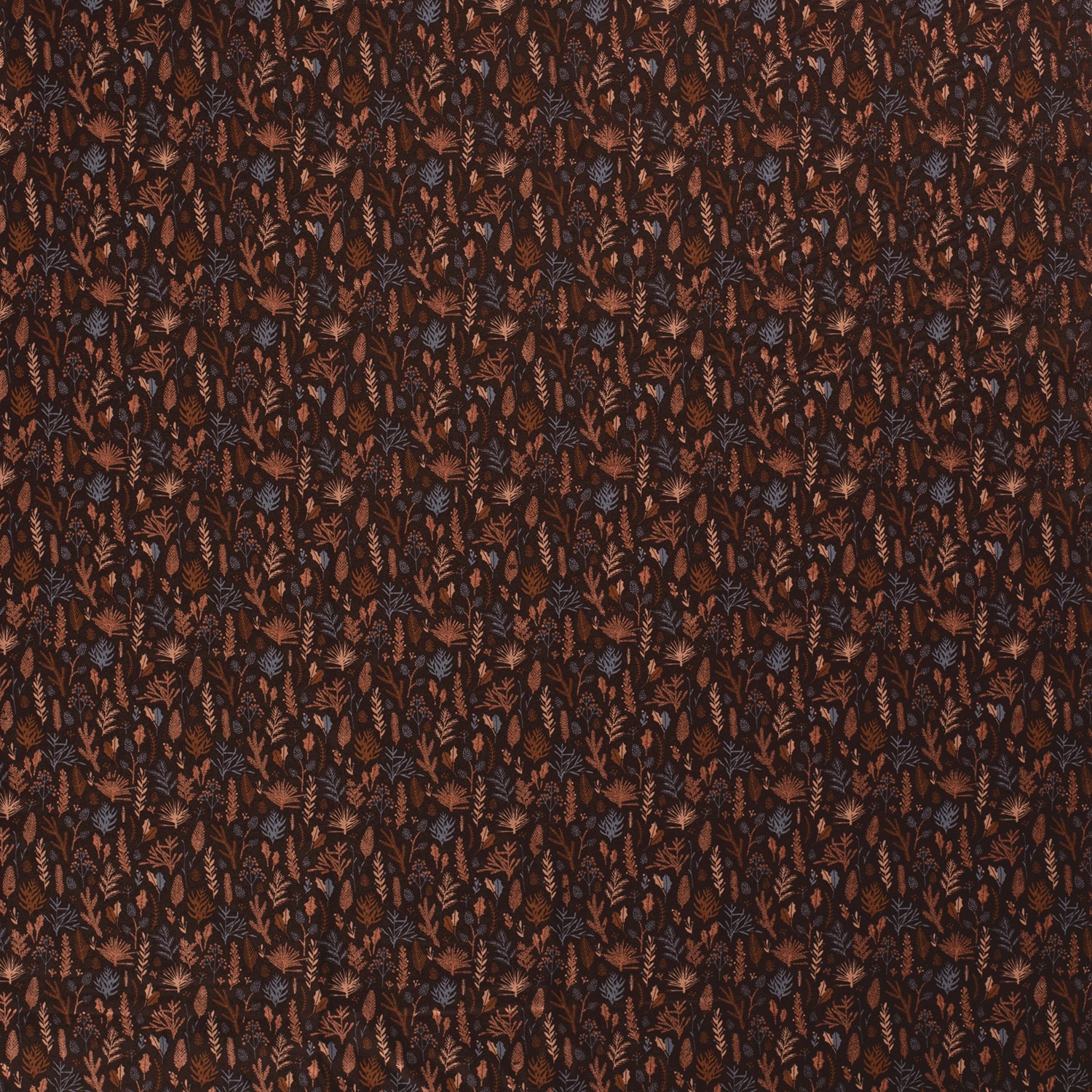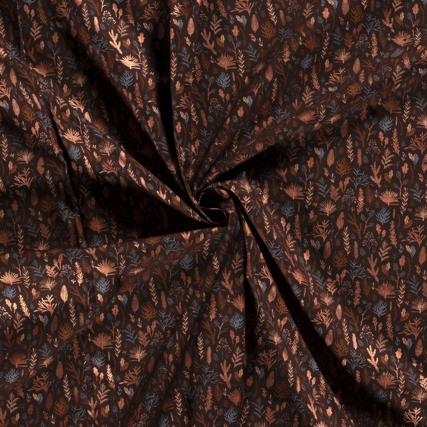 Bavlna FOLIOVÝ POTISK Trávy a větvičky na červenohnědé