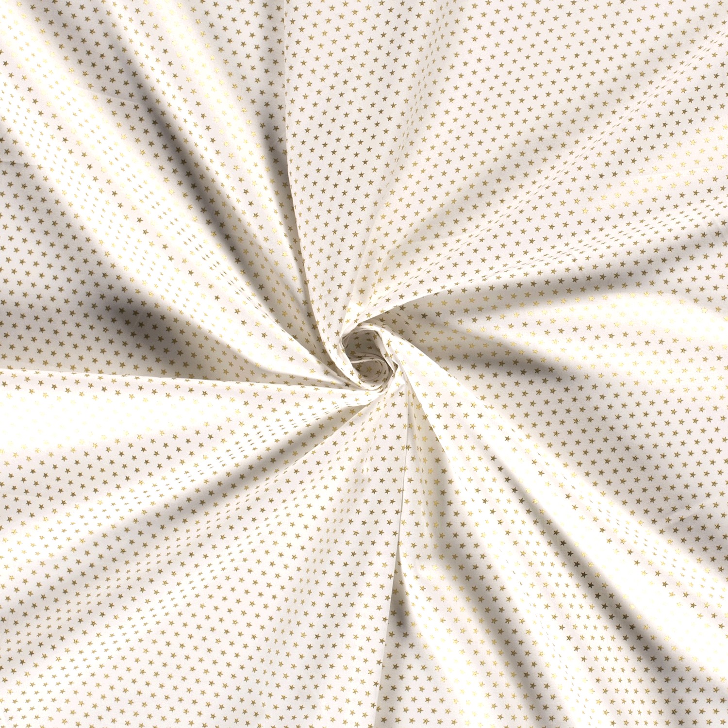 Dotek hvězdného kouzla pro vaše vánoční projekty: Na elegantním krémovém podkladu se třpytí jemné zlaté hvězdy v různě hustém rozprostření. Jemný zlatý tisk decentně září podle dopadu světla a dává látce slavnostní, ale přesto stylový vzhled – ideální pro ty, kteří chtějí Vánoce dekorovat elegantně a ne příliš hravě.