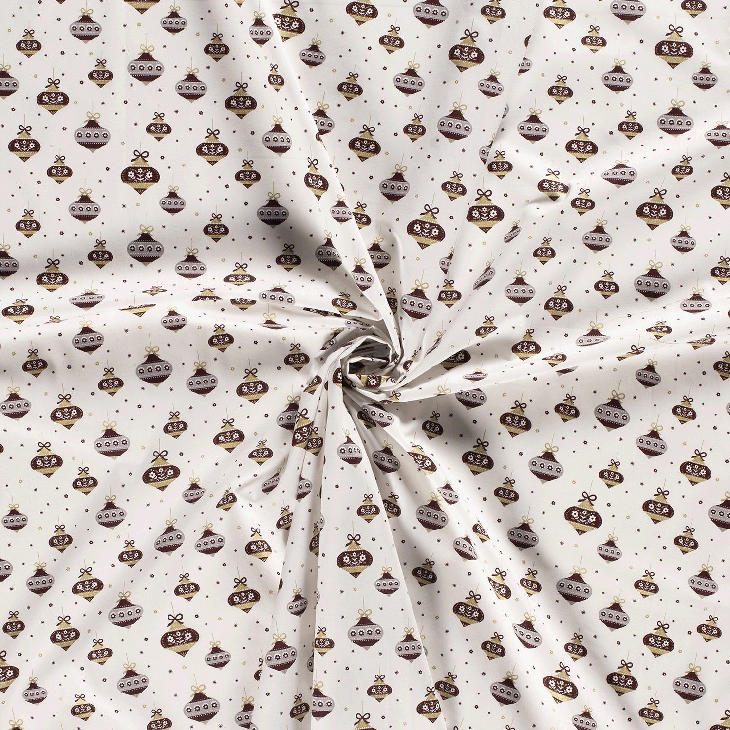 Bavlna VÁNOCE Zlatotisk Krajková Koule na Krémové