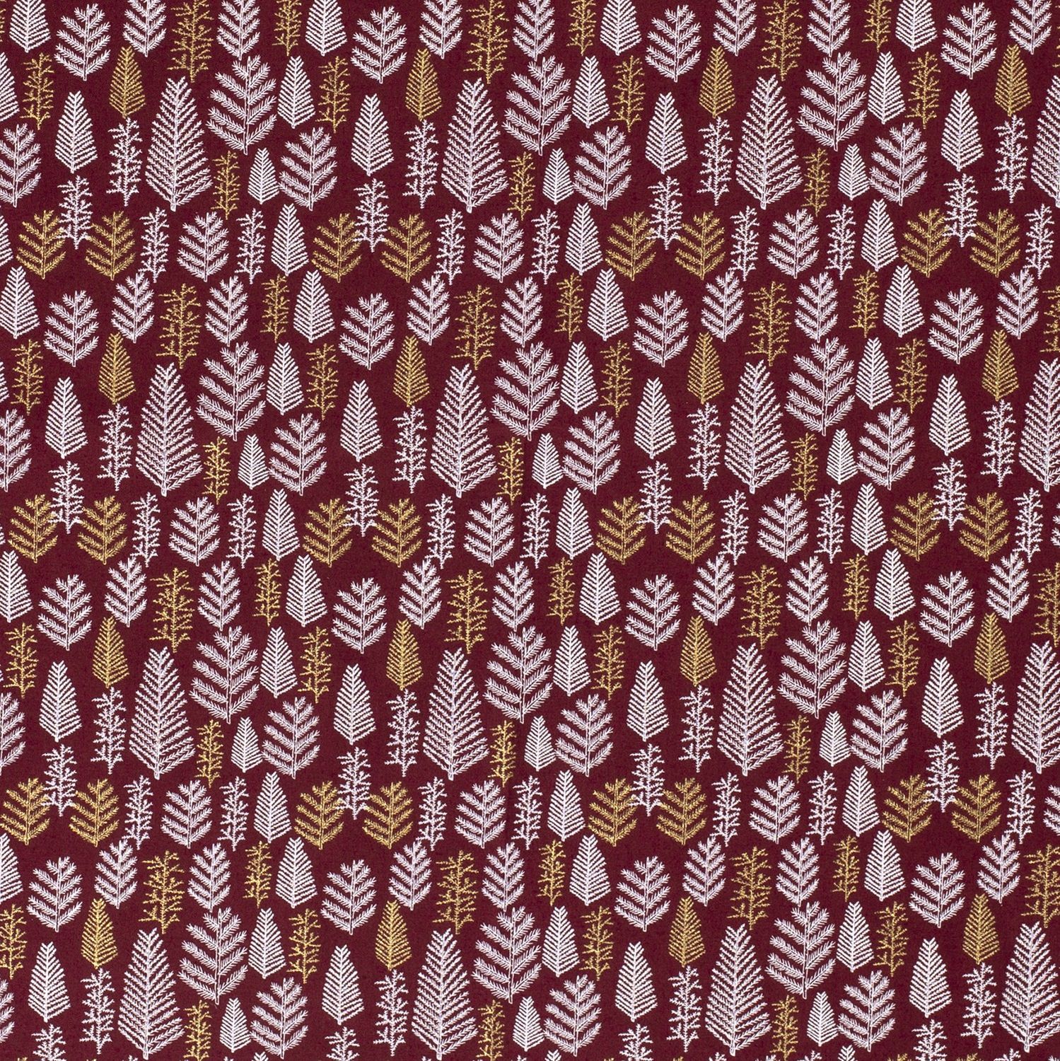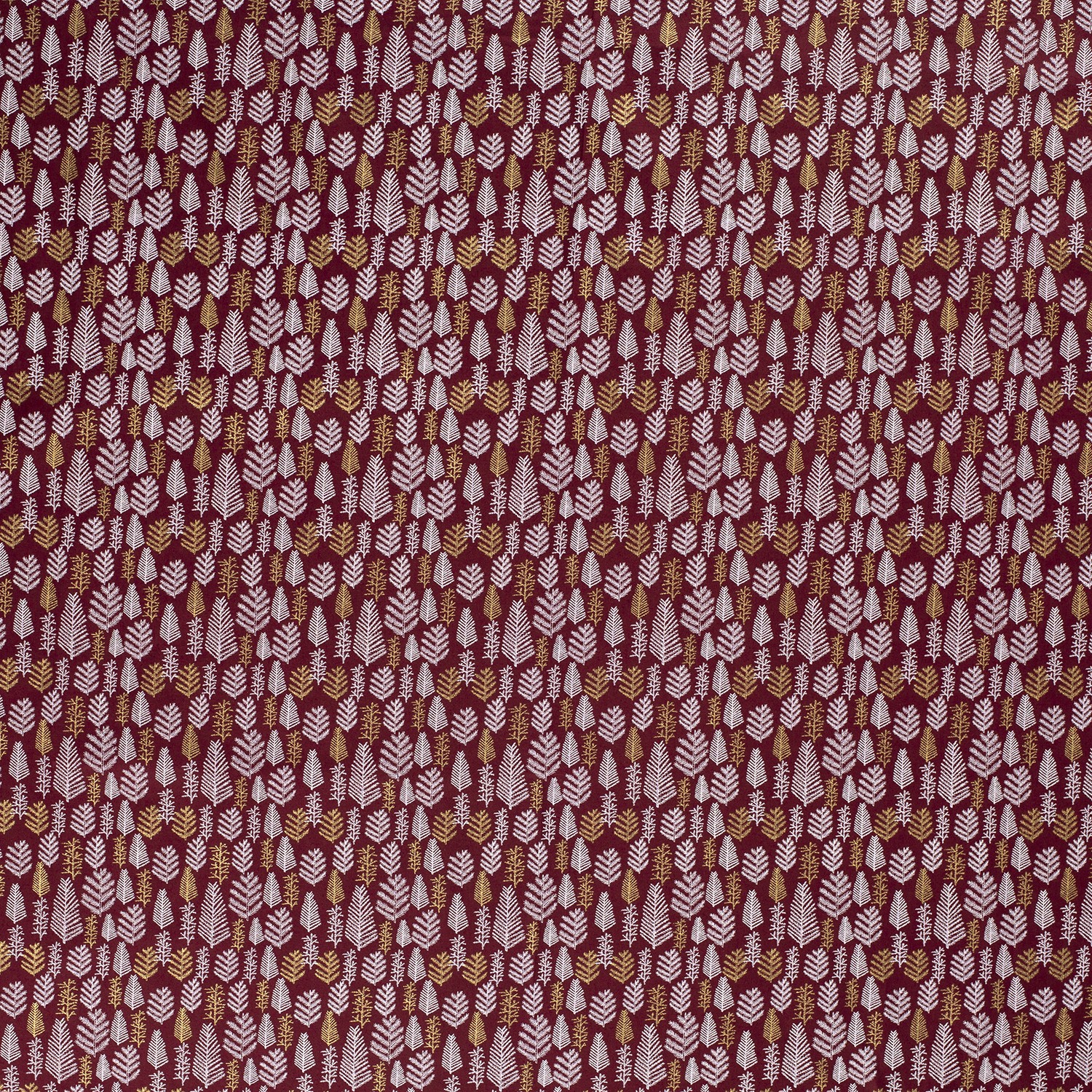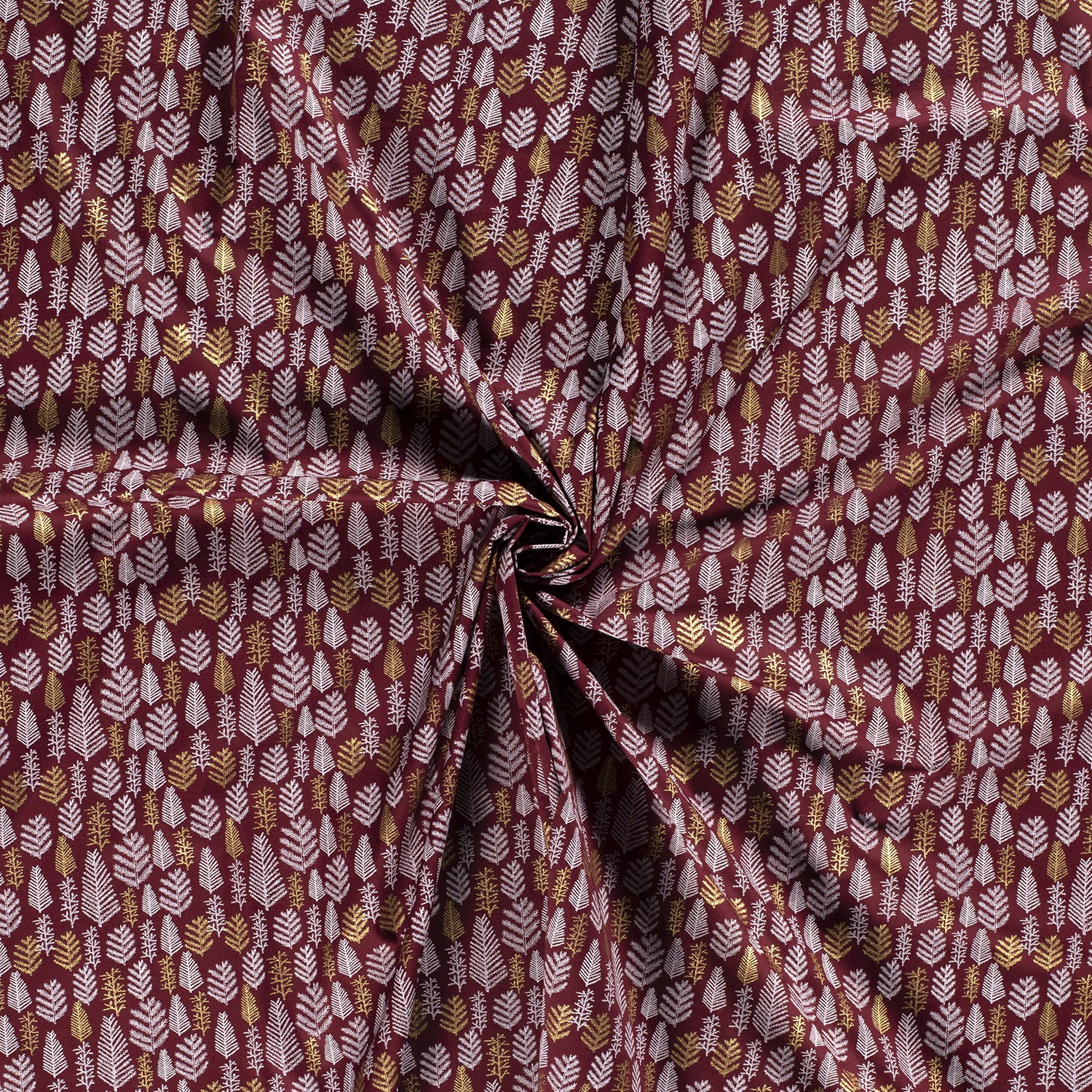 Bavlna VÁNOCE Zlatotisk Stromky na vínově červené
