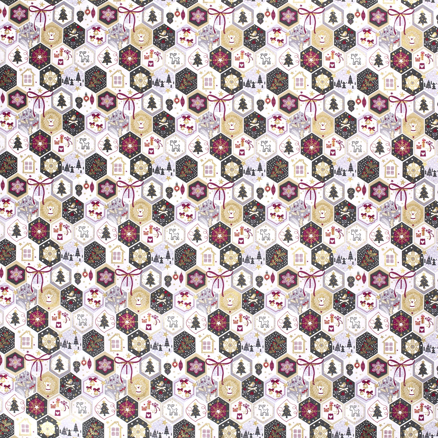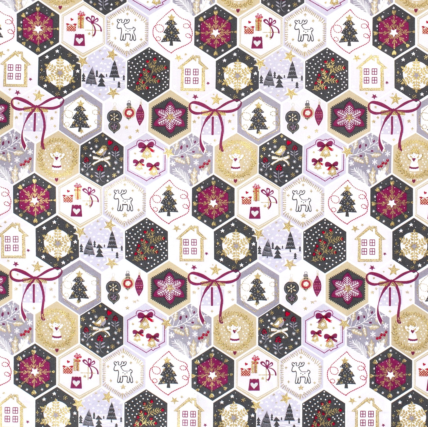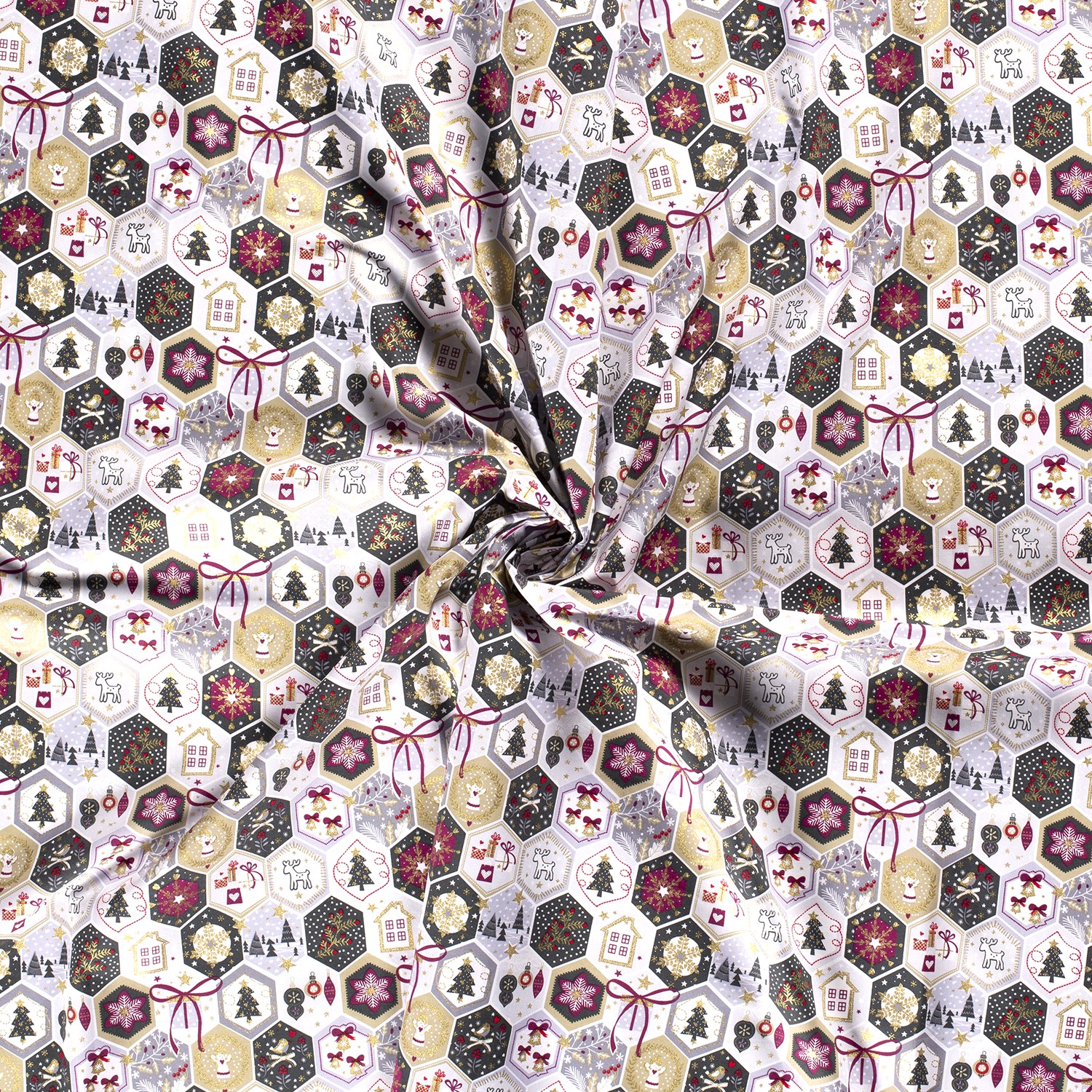 Bavlna VÁNOCE Zlatý tisk motivů v pláství na bílé