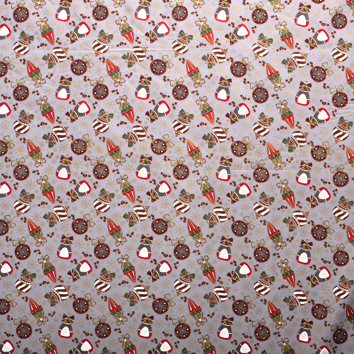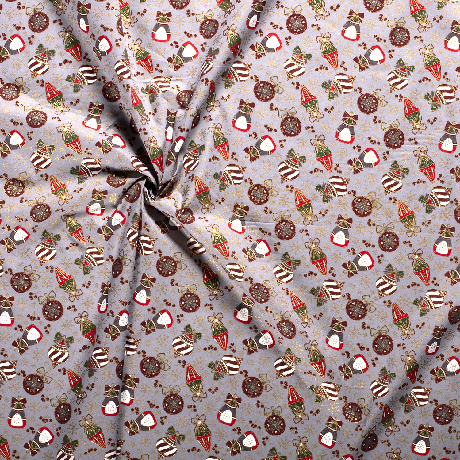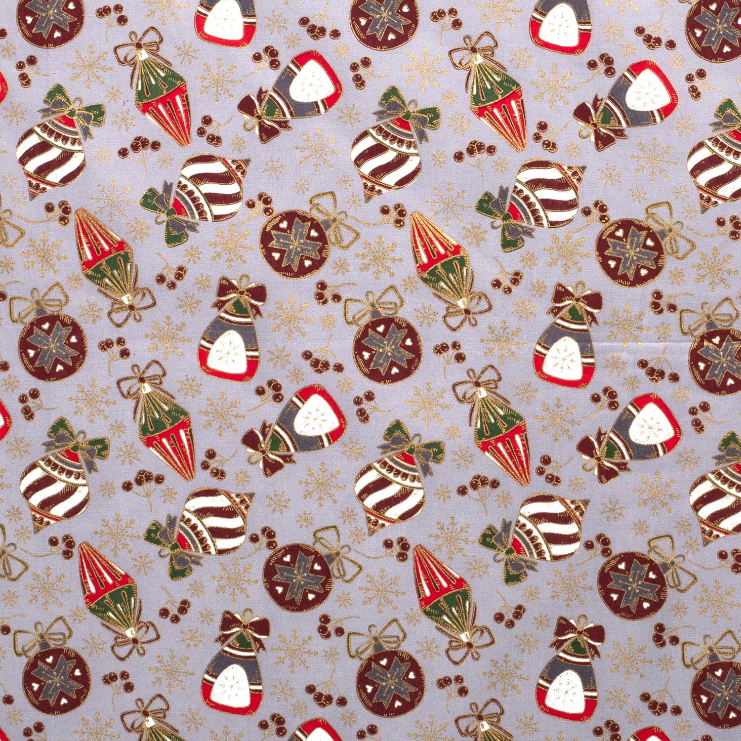Bavlněná vánoční látka se zlatým potiskem ornamentů světle šedá