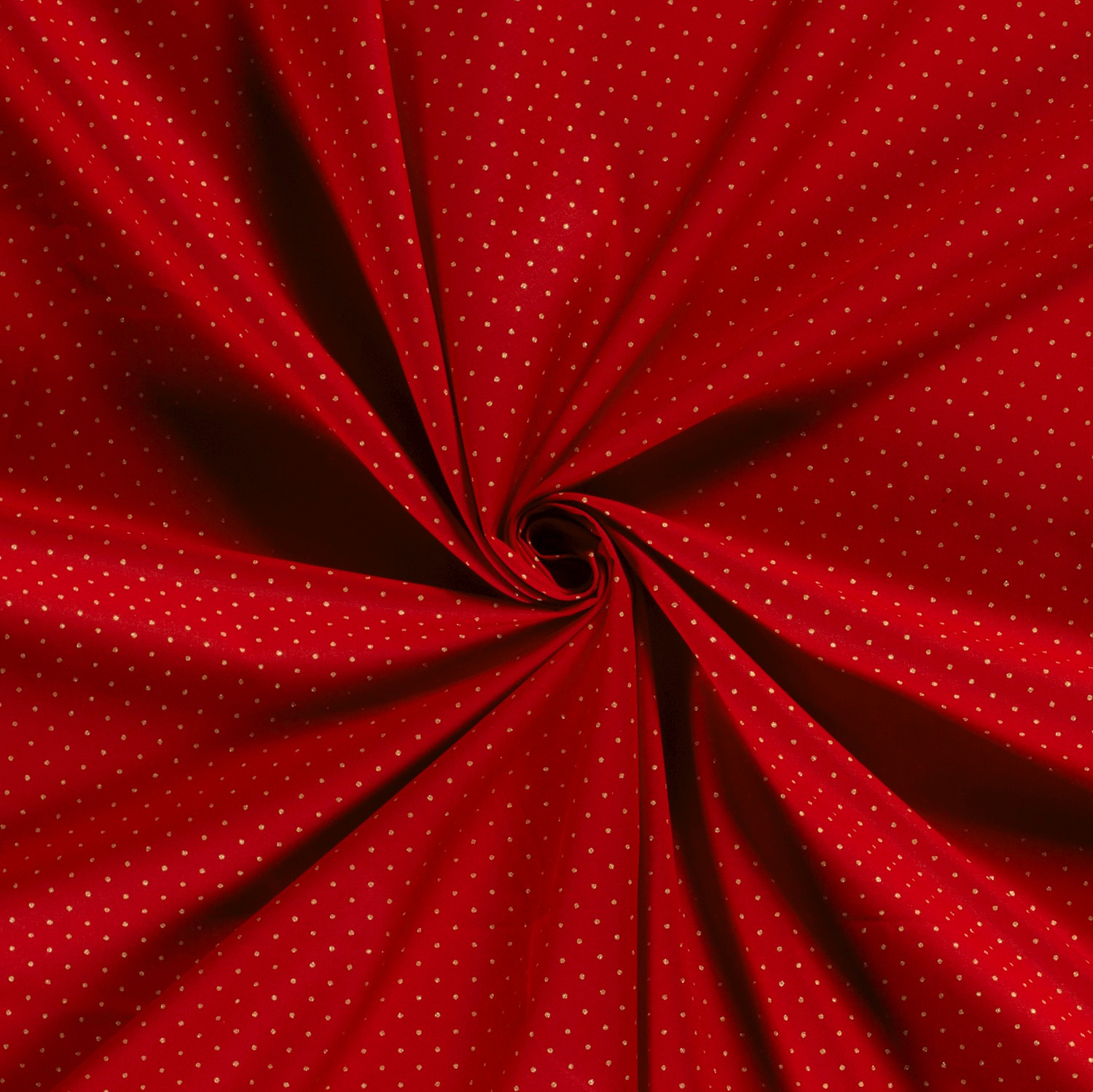Látka jako slavnostný déšť konfet: Na zářivě červeném pozadí tančí nespočet jemných mini puntíků v ušlechtilé zlaté barvě. Jemný vzor puntíků působí živě a radostně, aniž by byl příliš výrazný – ideální pro všechny, kdo milují klasické vzory s nádechem elegance.