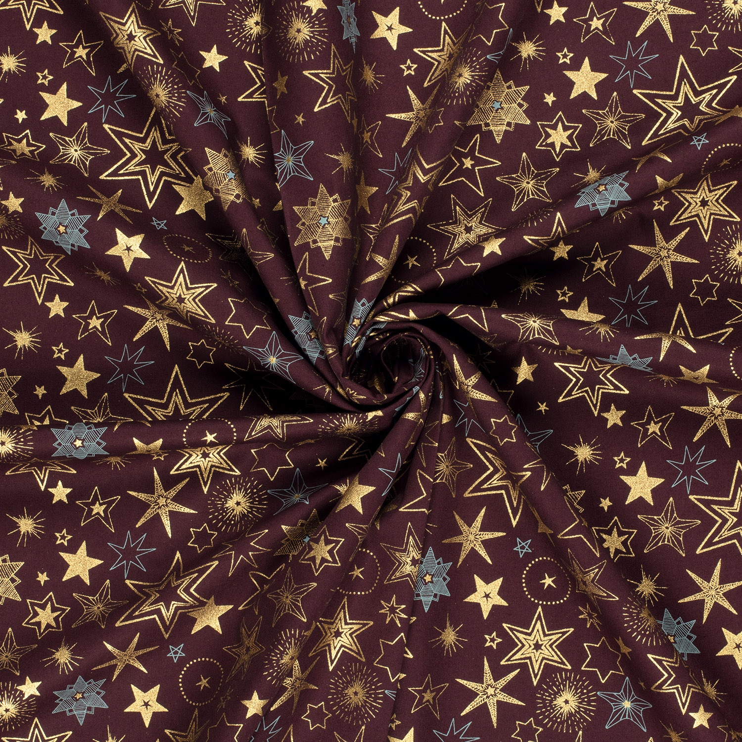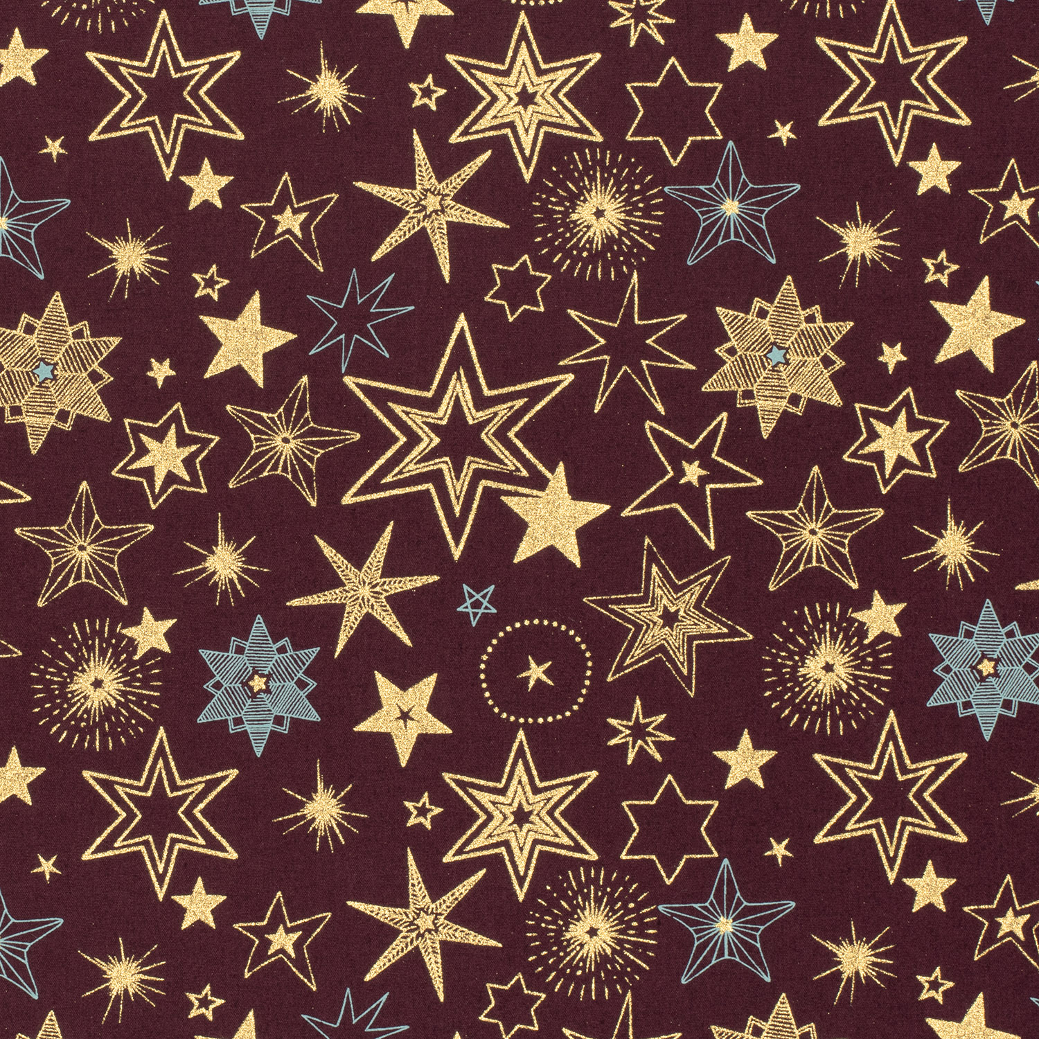 Bavlněný popelín - Stars Mix Bordeaux Gold