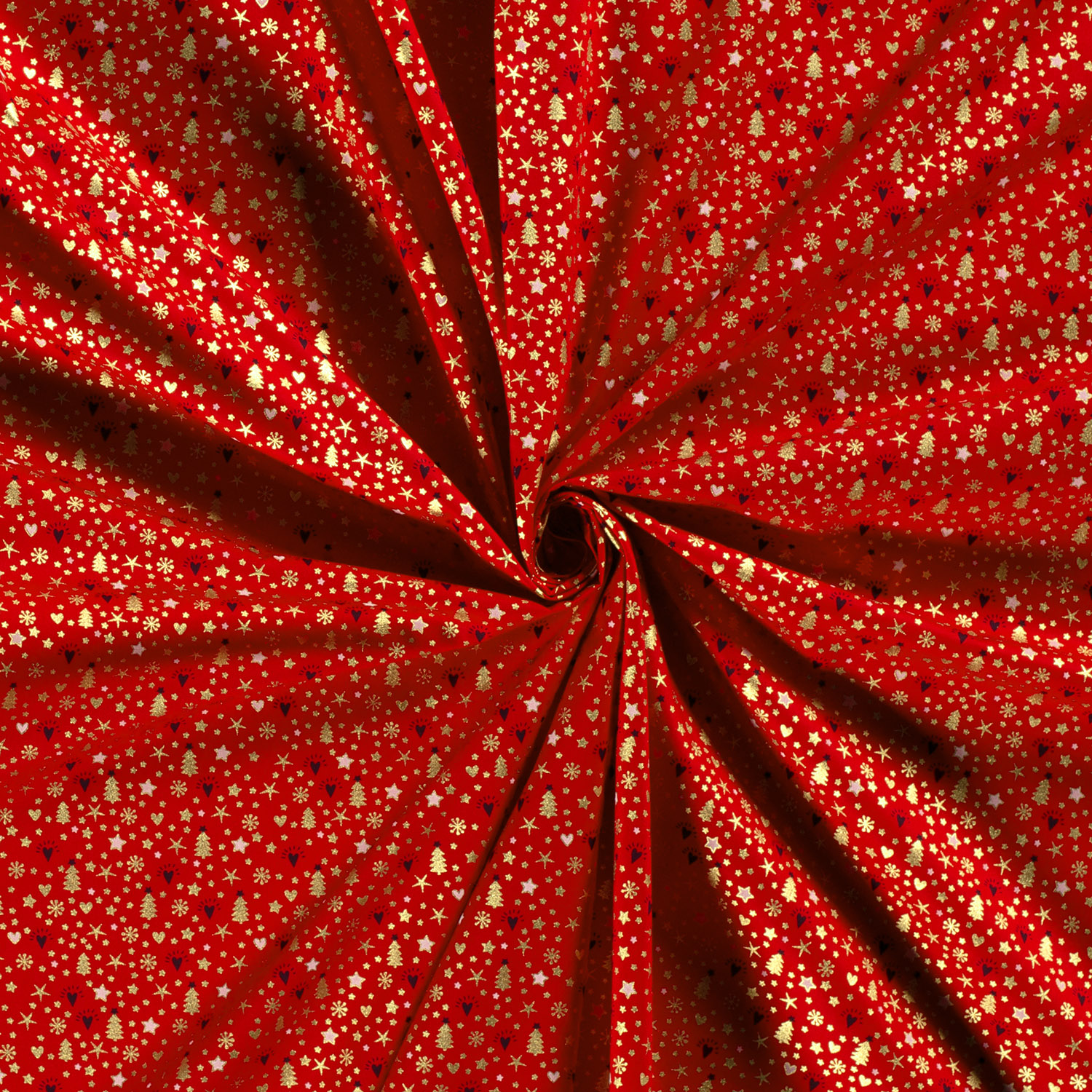 Bavlněný popelín - Vánoční stromek zlatý červený