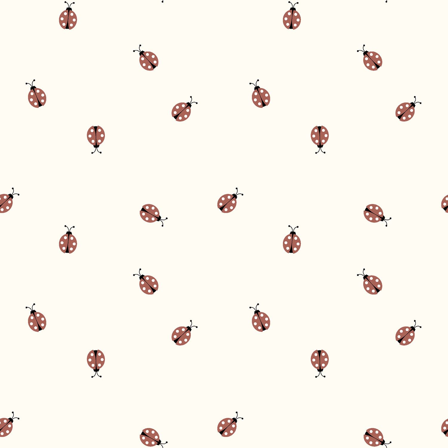 Jemný vlnově bílý odstín tvoří pozadí pro tento roztomilý design berušek: malé, detailně zpracované berušky s jasně červeným krunýřem a jemnými černými tečkami radostně lezou po látce. Jemné, křivolaké linky je nechávají působit, jako by si hravě tančily po ploše – živé, ale přesto příjemně klidné v celkovém dojmu.