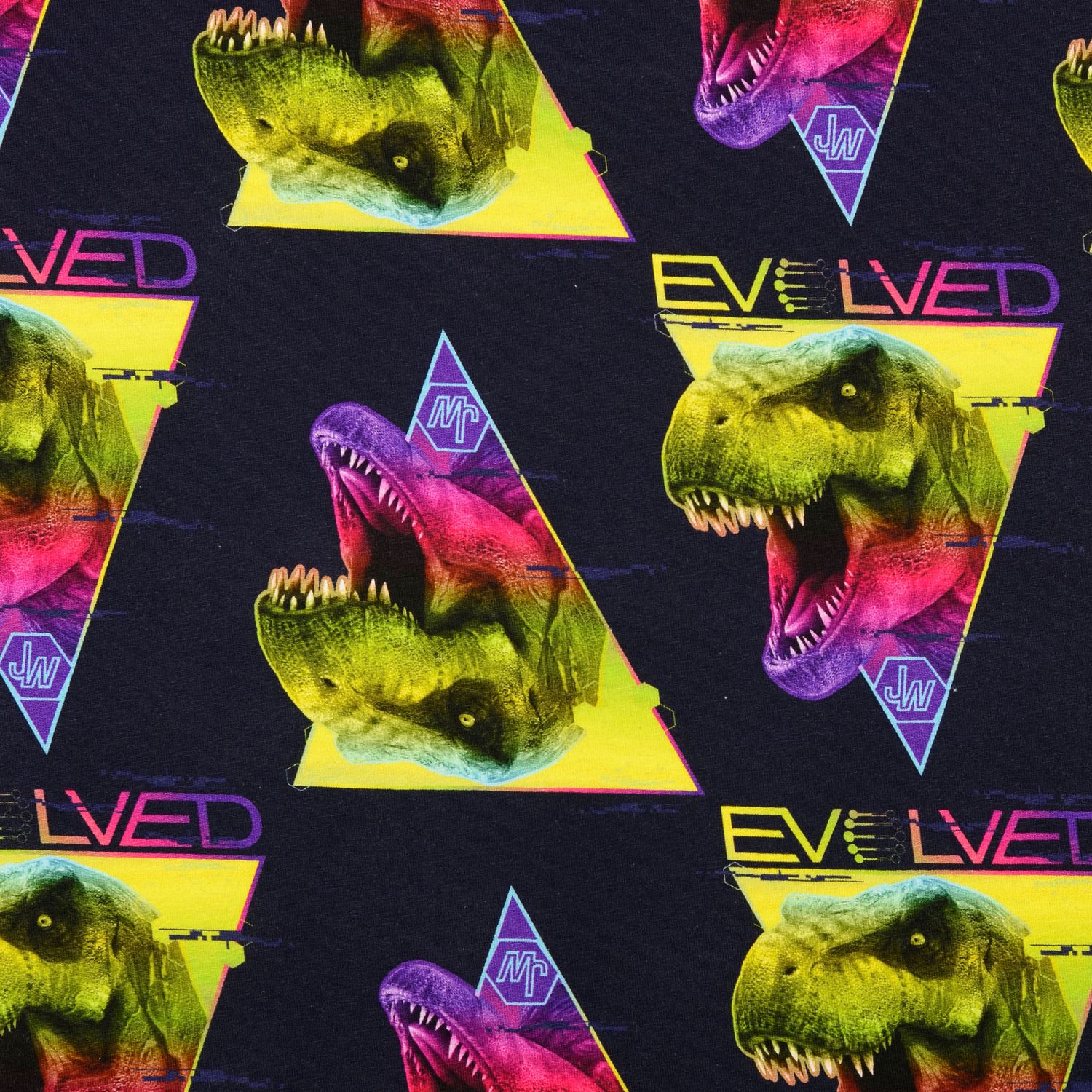 Ponořte se do světa dinosaurů: Na tomto působivém jerseji se prohánějí mocní T-Rexové a další pradávní giganti z oficiálního univerza Jurassic World. Detailní digitální tisk zobrazuje dinosaury v živých, výrazných barvách na tmavém, mírně mystickém pozadí – jako scéna přímo z filmu.