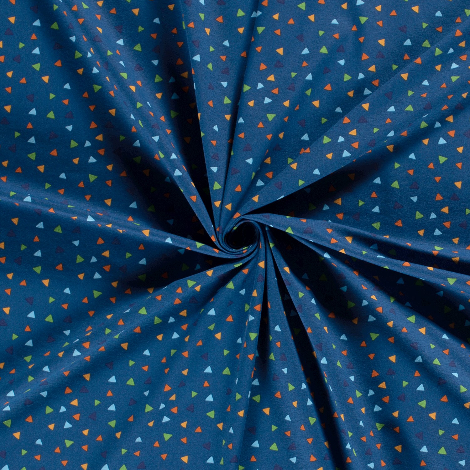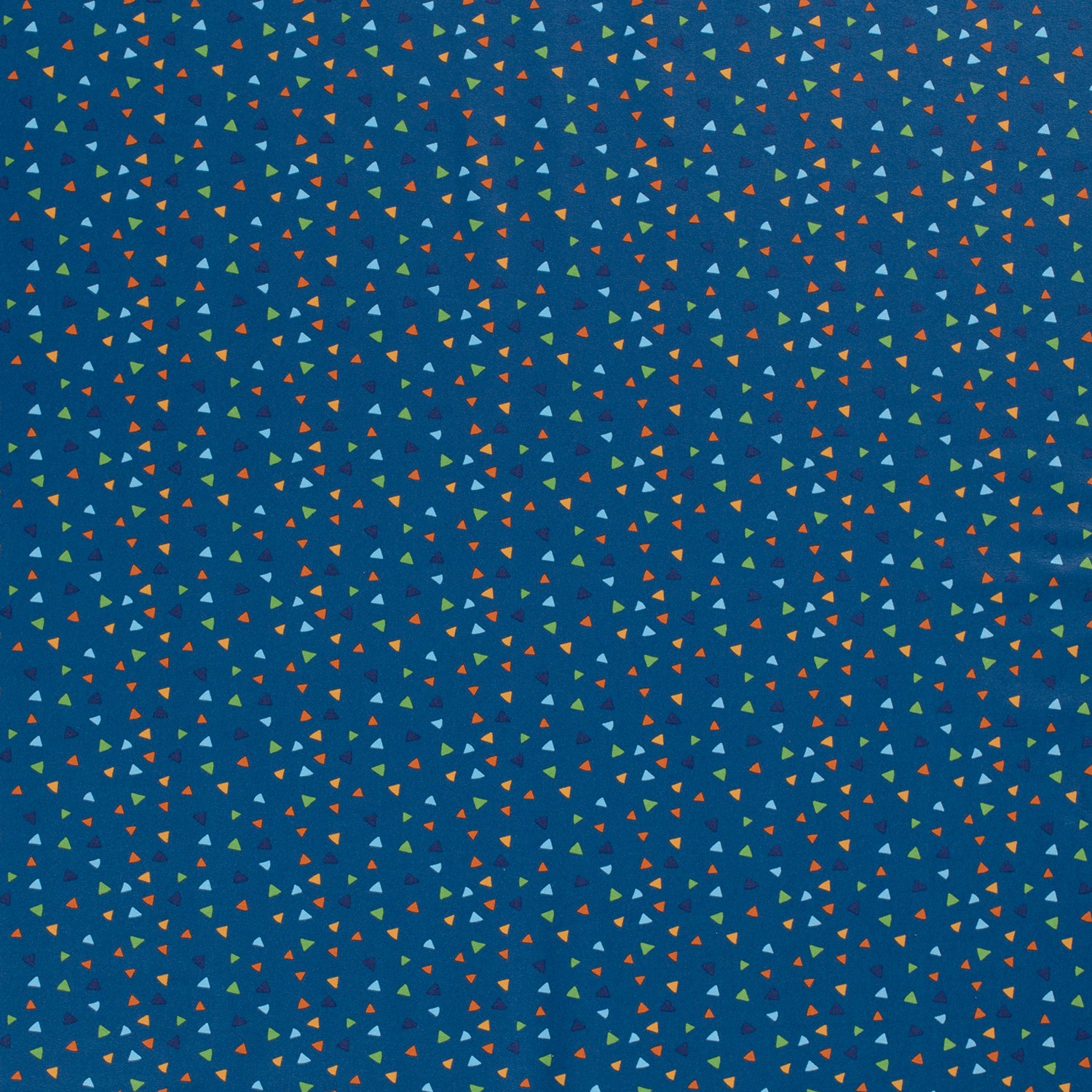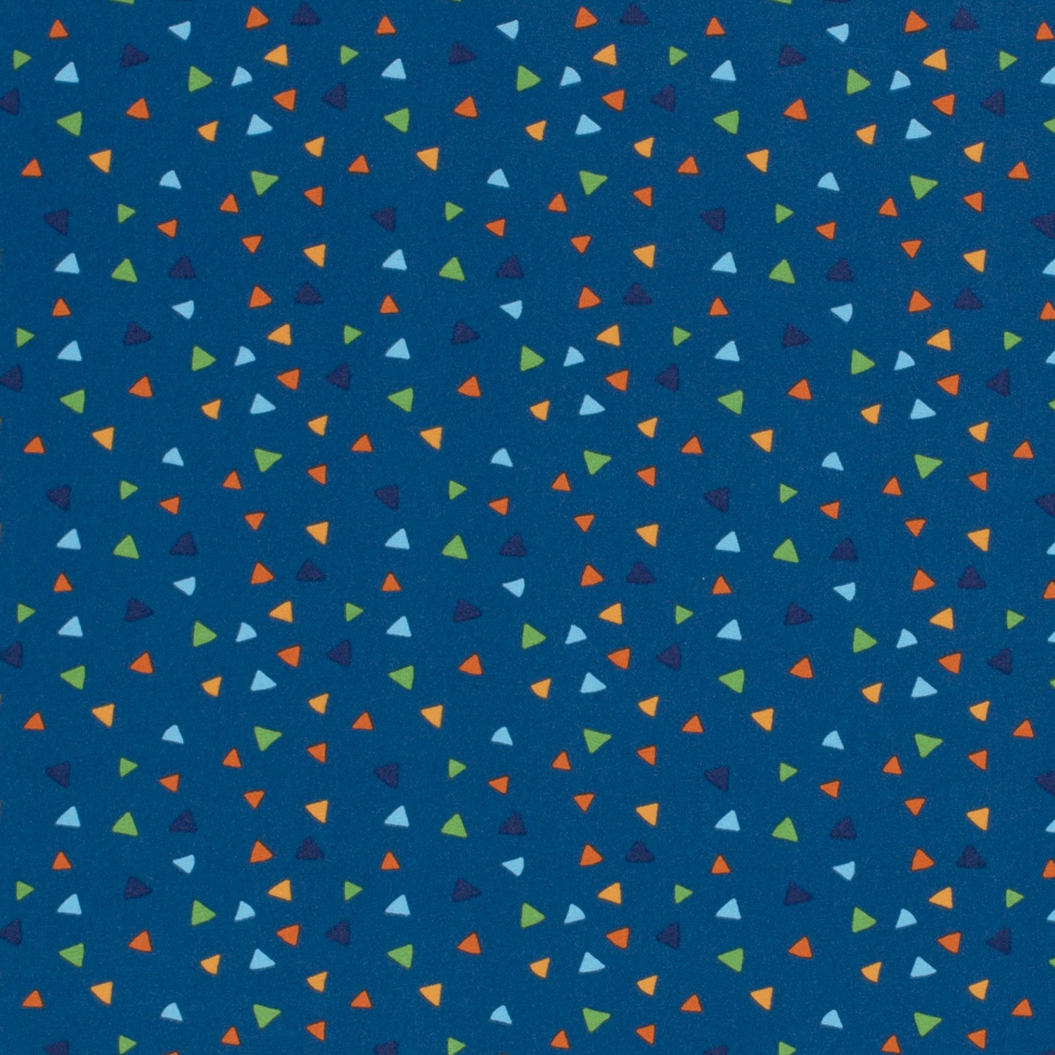 Živá královská modř tvoří pozadí pro nespočet malých, jemně uspořádaných trojúhelníčků, které se ve světlých, přátelských tónech rozprostírají po látce. Moderní, grafický vzor působí svěže a radostně, aniž by byl rušivý – ideální jako kombinovaná látka k vzorovaným akcentům nebo jako nenápadný poutač při samostatném šití.