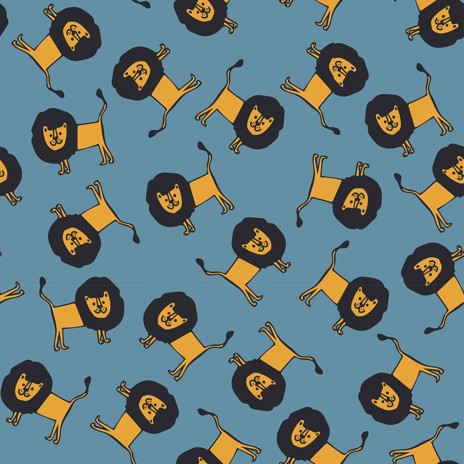 Kouzelný jersey pro malé i velké fanoušky lvů: na jemném kouřově modrém pozadí se tyčí roztomilé lví hlavy s načechranou hřívou, milými obličeji a jemnými konturami. Jemné tečky a malé detaily kolem lvů doplňují design a dodávají látce hravý, moderní vzhled.
