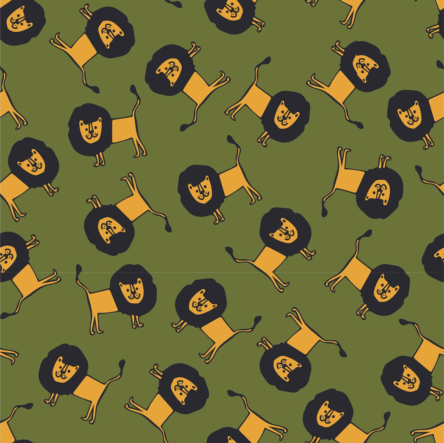Tento kouzelný jersey přináší pravou safari atmosféru do vašeho šicího koutku: Na hluboké tmavě zelené barvě se pohybují lvi nakreslení s láskou v teplých žlutých a béžových odstínech. Jemné detaily v obličeji a hřívě dávají těmto šelmám přátelský, téměř roztomilý výraz – ideální pro malé i velké milovníky zvířat.