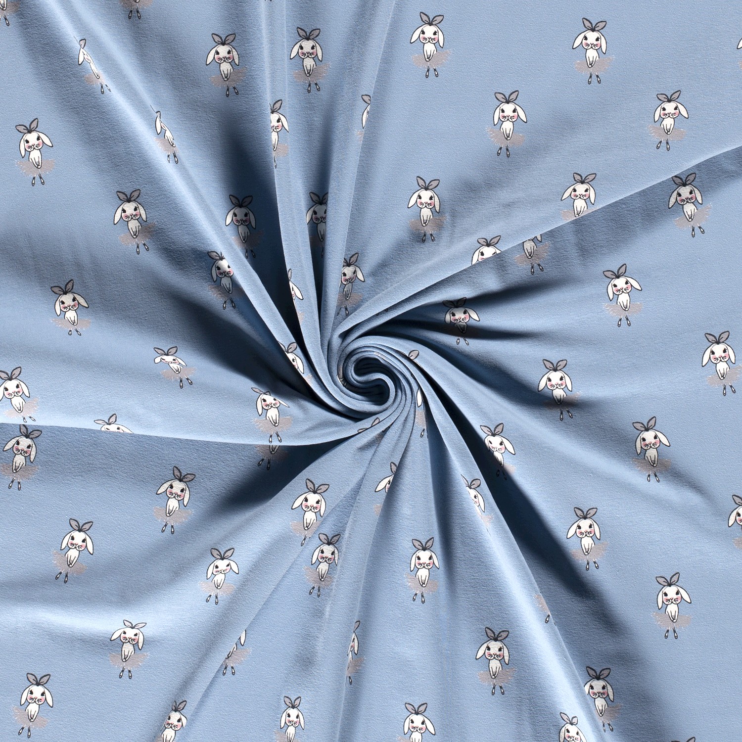 Jersey Zajíčci baletky na světlé kouřově modré
