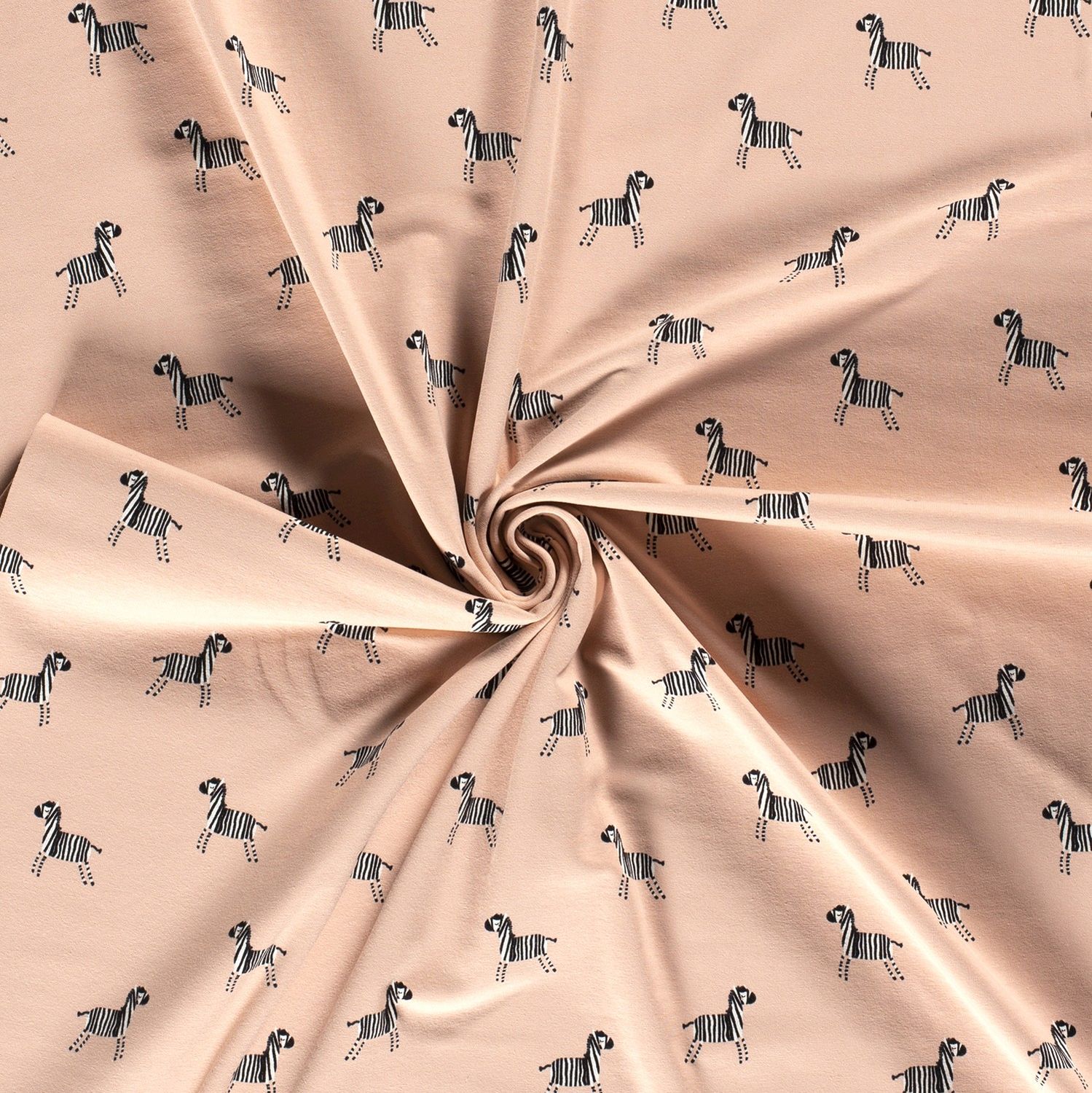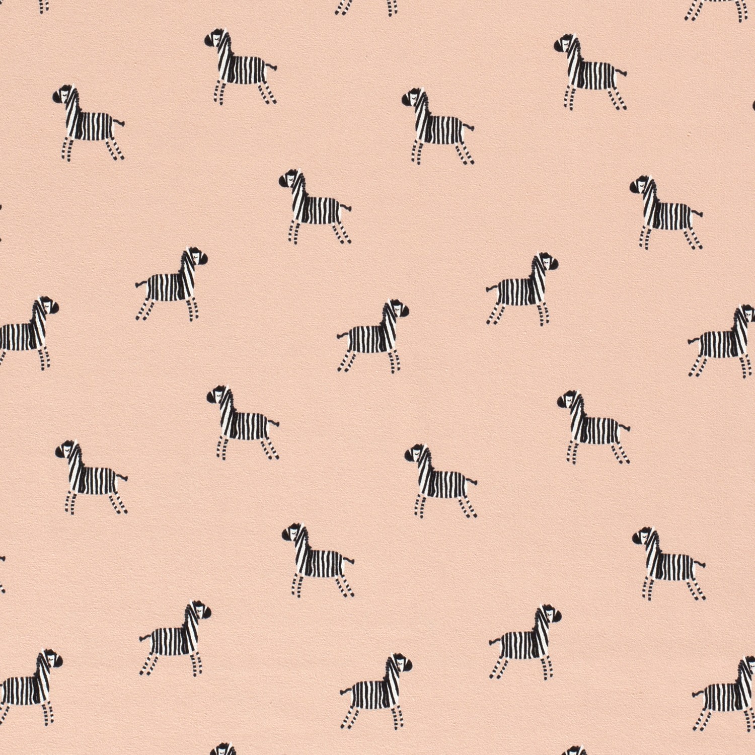 Dotek safari pro vaše šicí projekty: Na jemném meruňkovém odstínu tohoto jerseye se pohybují láskyplně kreslená zebry v černobílé, která látce dodávají radostný a zároveň stylový vzhled. Jasné kontury zvířat a jemné, teplé pozadí dělají z designu skutečný poutač – ideální pro všechny, kdo mají rádi zvířecí motivy, ale přesto je chtějí decentní a moderní.