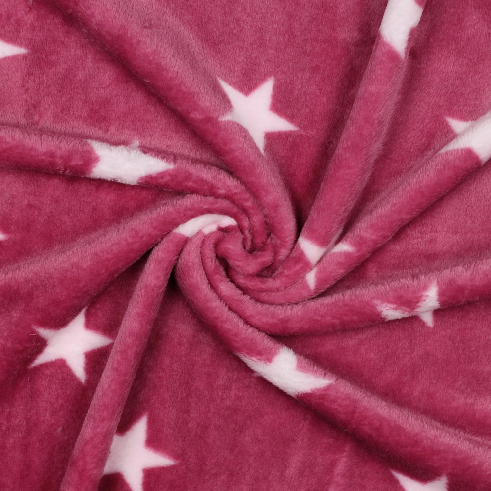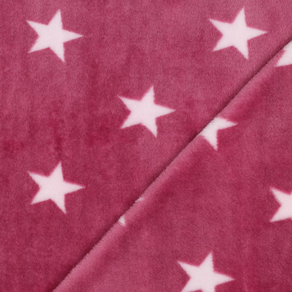 Látka, do které se zamilujete: Tento měkký oboustranný fleece spojuje dvě krásné strany v jednom. Na jedné straně září jemné bílé hvězdy na intenzivně růžovém pozadí, na druhé straně svítí na jemném růžovém tónu.