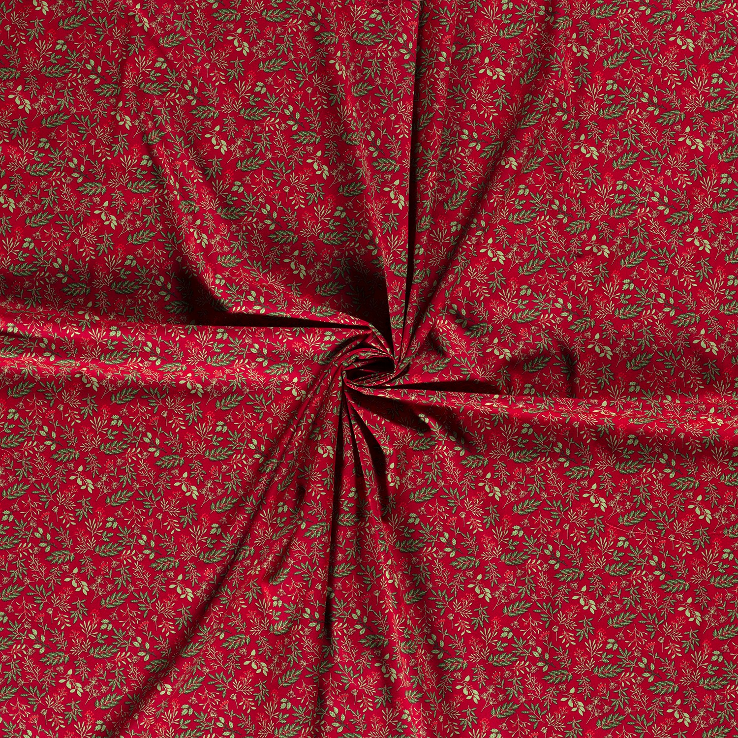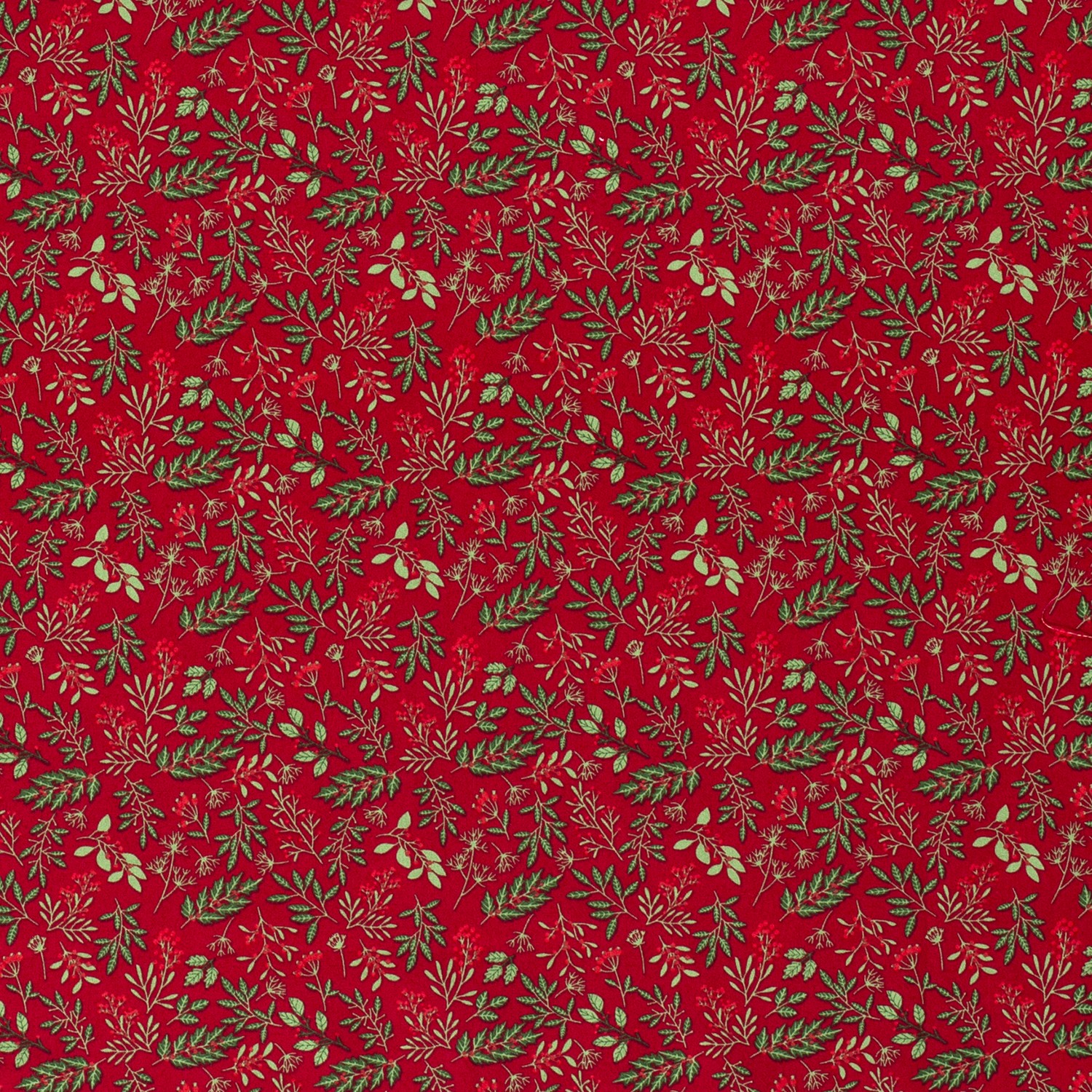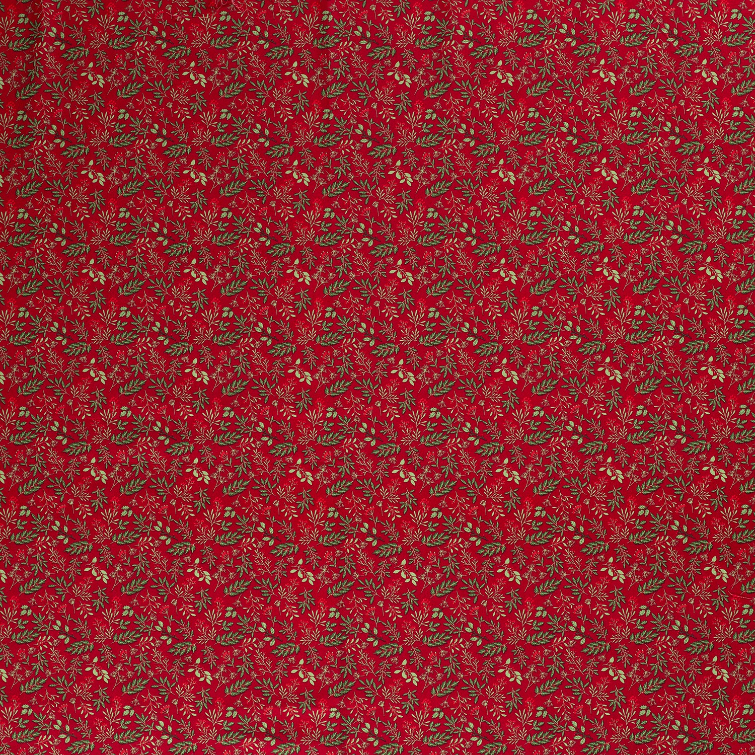 Sváteční bavlněná látka, která dokonale vystihuje Vánoce: na teplé, syté vánoční červené se vinou jemné větvičky jmelí, něžné listy a malé bobule – pečlivě navržené v jemných přírodních tónech s decentními kontrasty. Jemný vzor působí elegantně, aniž by byl přeplácaný, a harmonicky se rozprostírá po celé ploše.