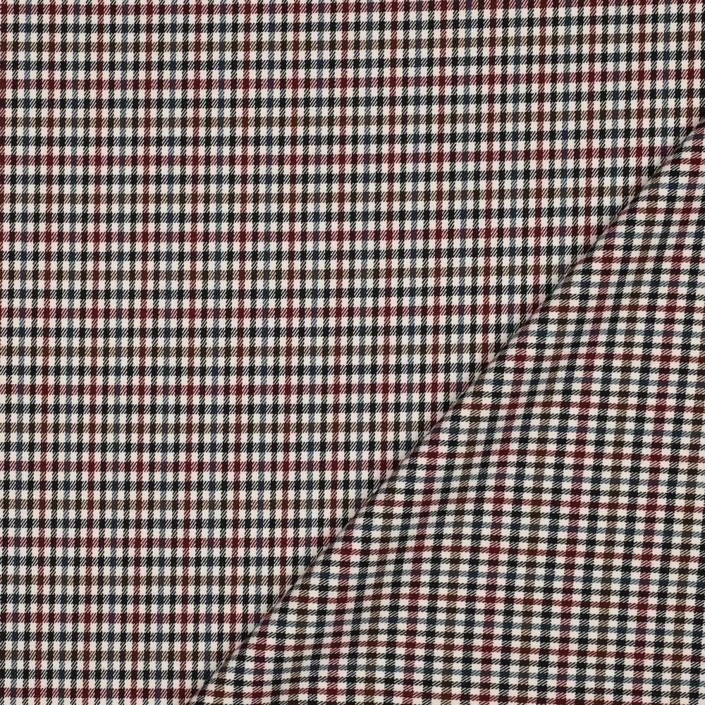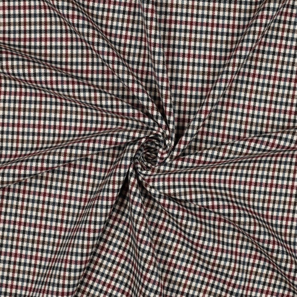 Módní látka - kalhotovina drobná kostka černá ecru červená