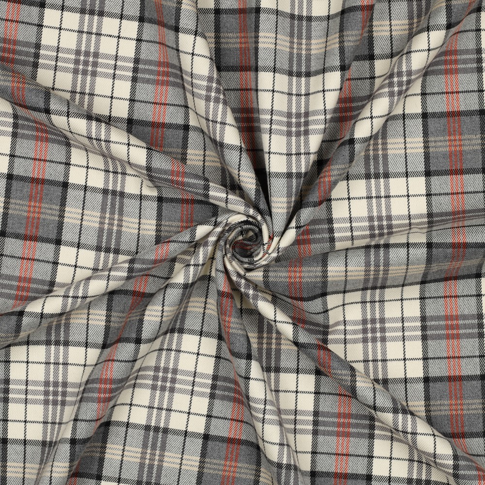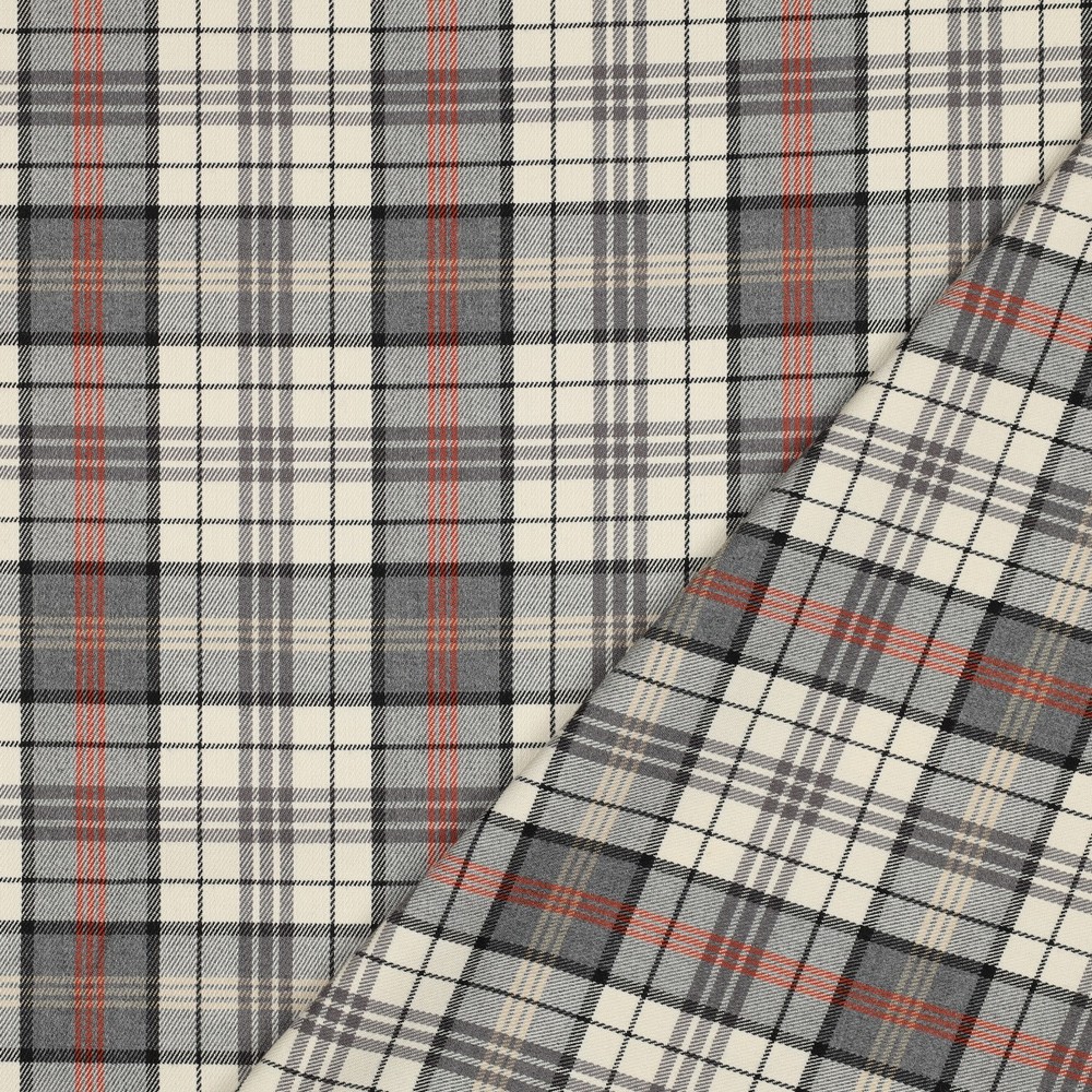 Tato klasická látka se skotskou kostkou spojuje nadčasovou eleganci s moderní barevnou kombinací: teplá ecru se snoubí s hlubokou černou a zářivou červenou, která designu dodává svěží a živý akcent. Jemné linky a čisté kostky působí zároveň ušlechtile i ležérně – ideální pro všechny, kdo milují typický kostkovaný vzhled, ale hledají něco výjimečného.