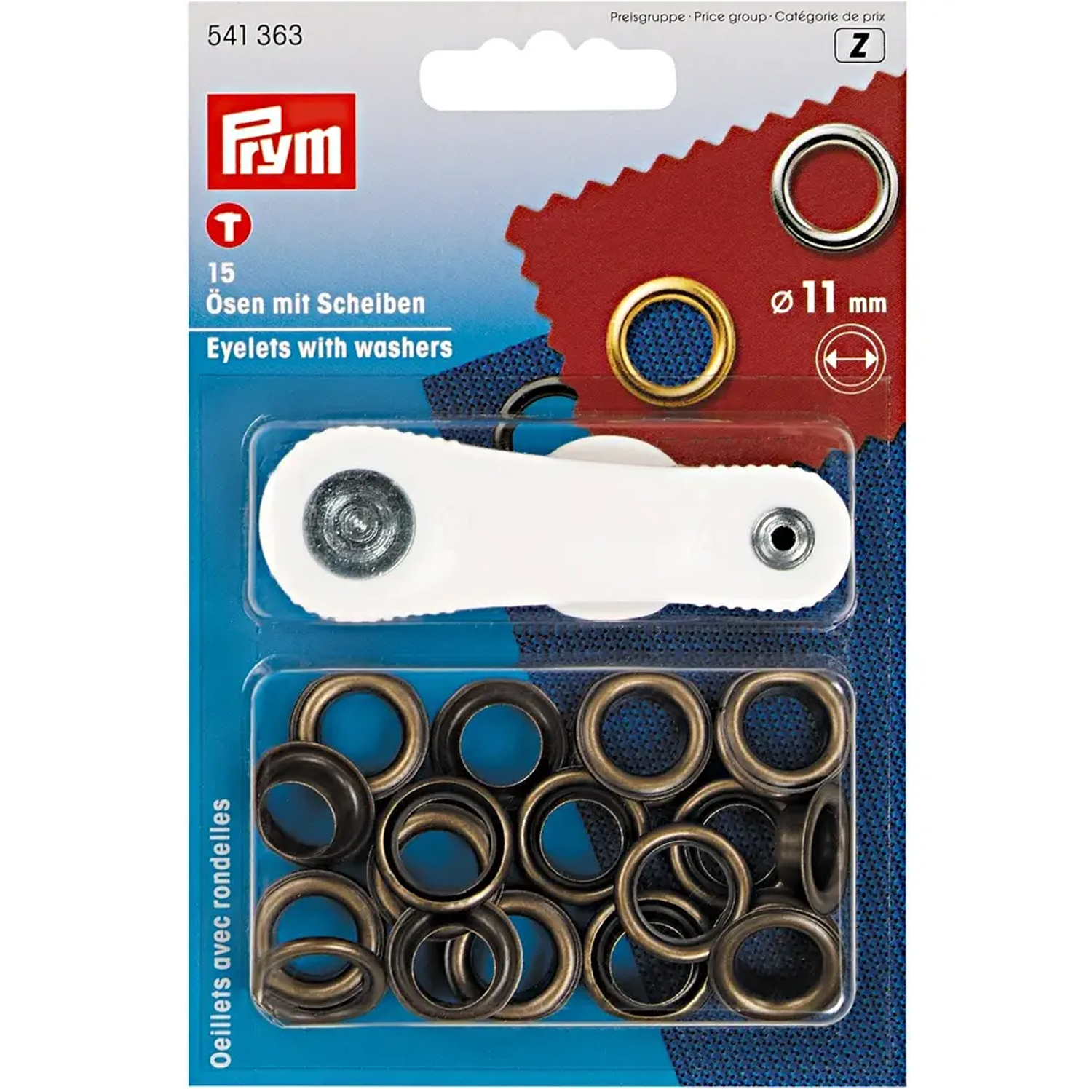 Očka Prym Ø 11 mm + nářadí - staromosaz