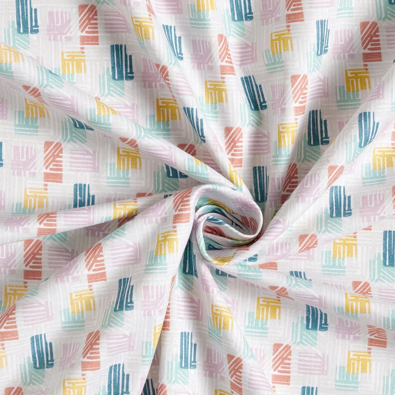 Bavlněná látka Kreton Šrafované tvary – stříbrně šedá/pastelově fialová