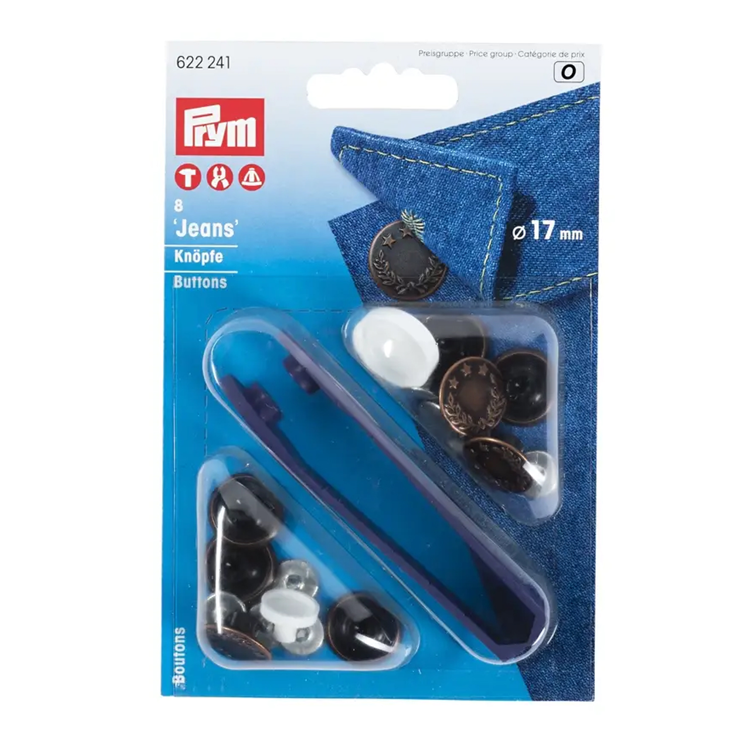 Knoflíky lze připevnit bez jakéhokoli šití: Knoflíky lze připevnit buď pomocí přiloženého nástroje a kladívka, nebo pohodlně pomocí kleští VARIO či trojnožky Prym. Profesionálních výsledků dosáhnete během chvilky - ideální pro nové projekty nebo pro oživení a opravu vašich oblíbených džínů.