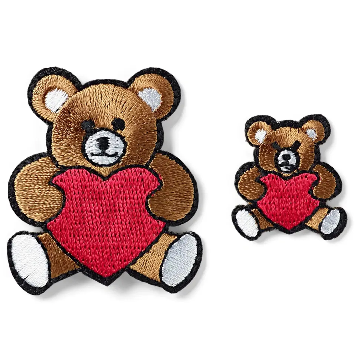Obě medvídkové nášivky se představují v teplých, přírodních hnědých tónech s láskyplnými detaily v obličeji – jednou menší a decentní, podruhé o něco větší jako skutečný poutač pozornosti.