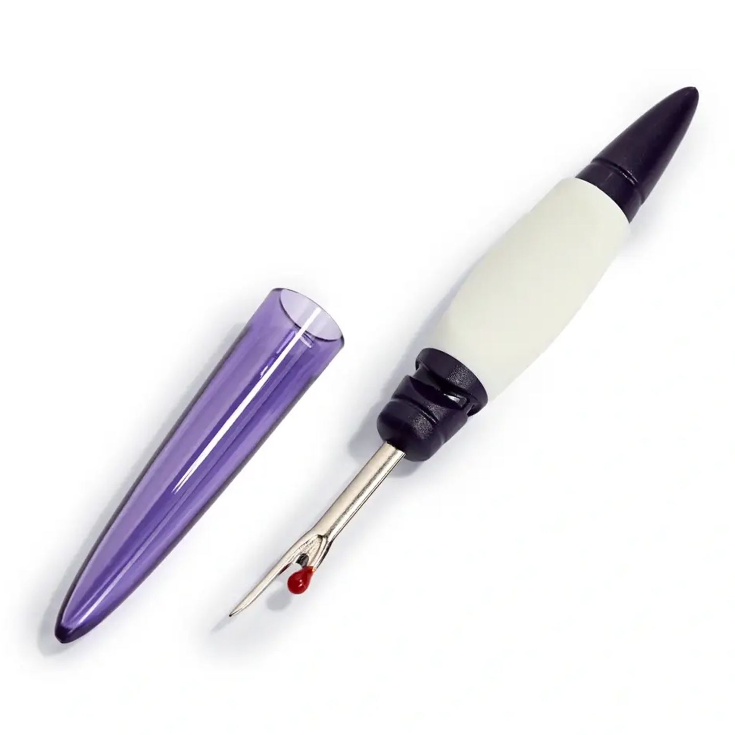 Protiskluzové zapuštěné rukojeti zajišťují, že rozrývač švů bezpečně padne do ruky - i při delším šití. Ochranná krytka slouží zároveň jako prodloužení rukojeti a umožňuje ještě pohodlnější práci.