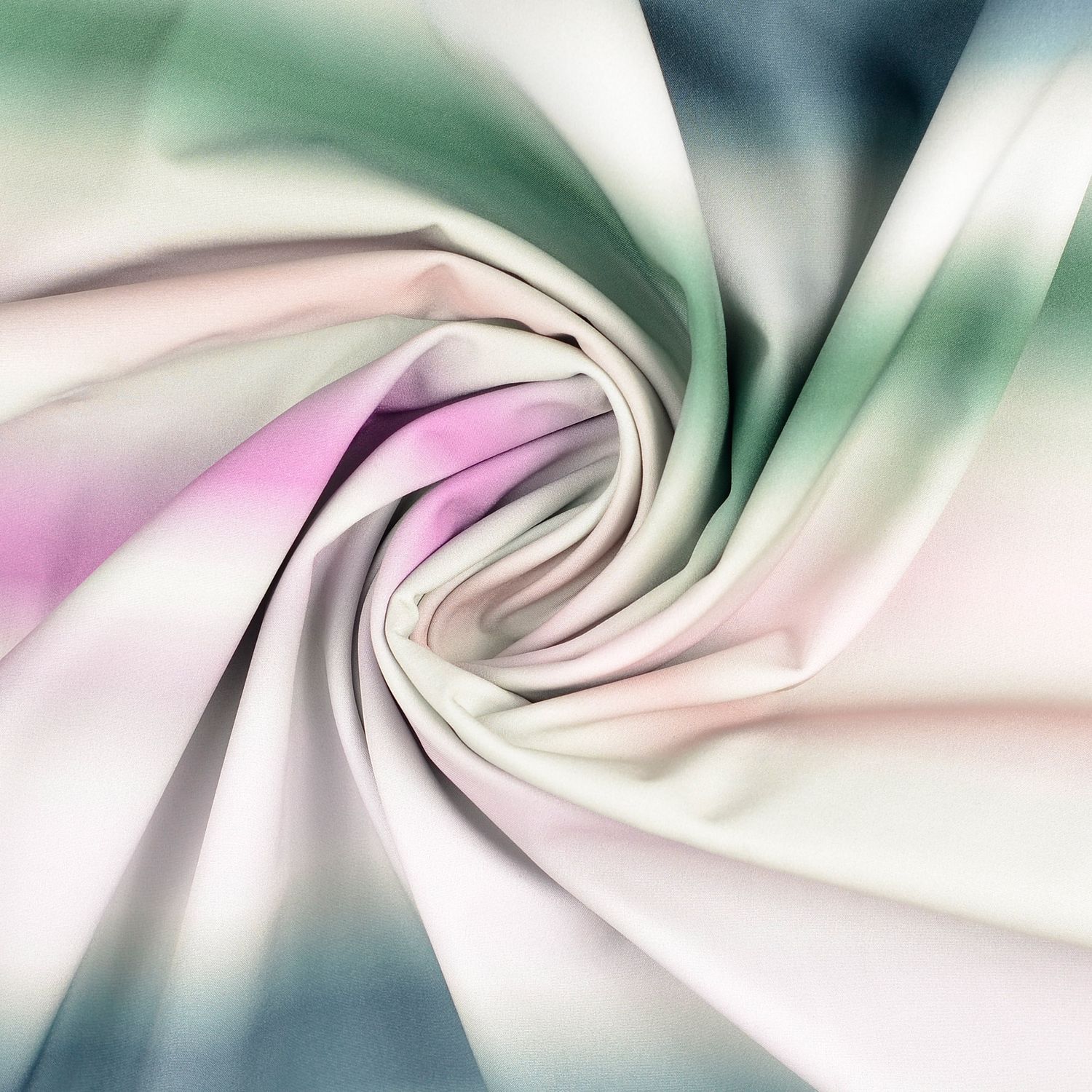 Dotek akvarelu na softshellu – tato látka okouzlí svými živými, ručně malovanými pruhy v čerstvých zelených tónech. Jemné mátové odstíny se setkávají s výraznější smaragdově zelenou, mezi nimiž jemné modré a tyrkysové akcenty plynule splývají. Nepravidelné, akvarelové pruhy působí jako namalované štětcem a dodávají každému šicímu projektu moderní, umělecký nádech.