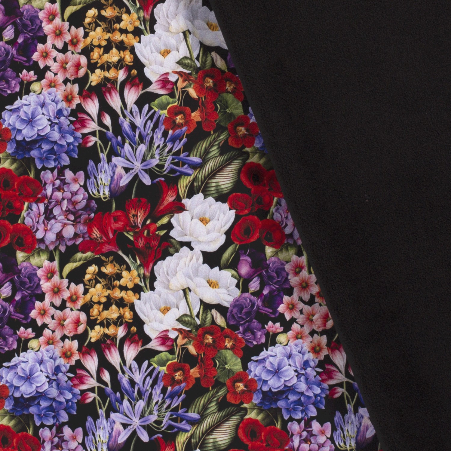 Pravý květinový sen na tmavém pozadí: tento softshell okouzluje bohatým květinovým mořem v zářivých barvách. Na hluboce černém pozadí září detailně kreslené květy v růžové, červené, oranžové, žluté, fialové, modré a tyrkysové – mezi nimi svěží zelené odstíny, jemné poupata a drobné listy. Harmonicky sladěné barvy působí jako moderní kytice a díky vysoce kvalitnímu digitálnímu tisku vynikají zvlášť jasně.
