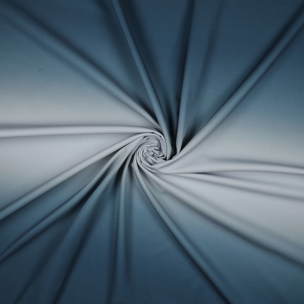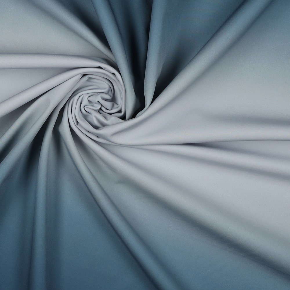 Látka jako jasná zimní obloha: Tento softshell okouzluje jemným přechodem v harmonických odstínech modré – od tmavě modré přes chladné středně modré až po světlejší, téměř mlhavé tóny. Digitální tisk činí barvy obzvlášť intenzivní a rovnoměrné, takže přechod vypadá jako namalovaný.