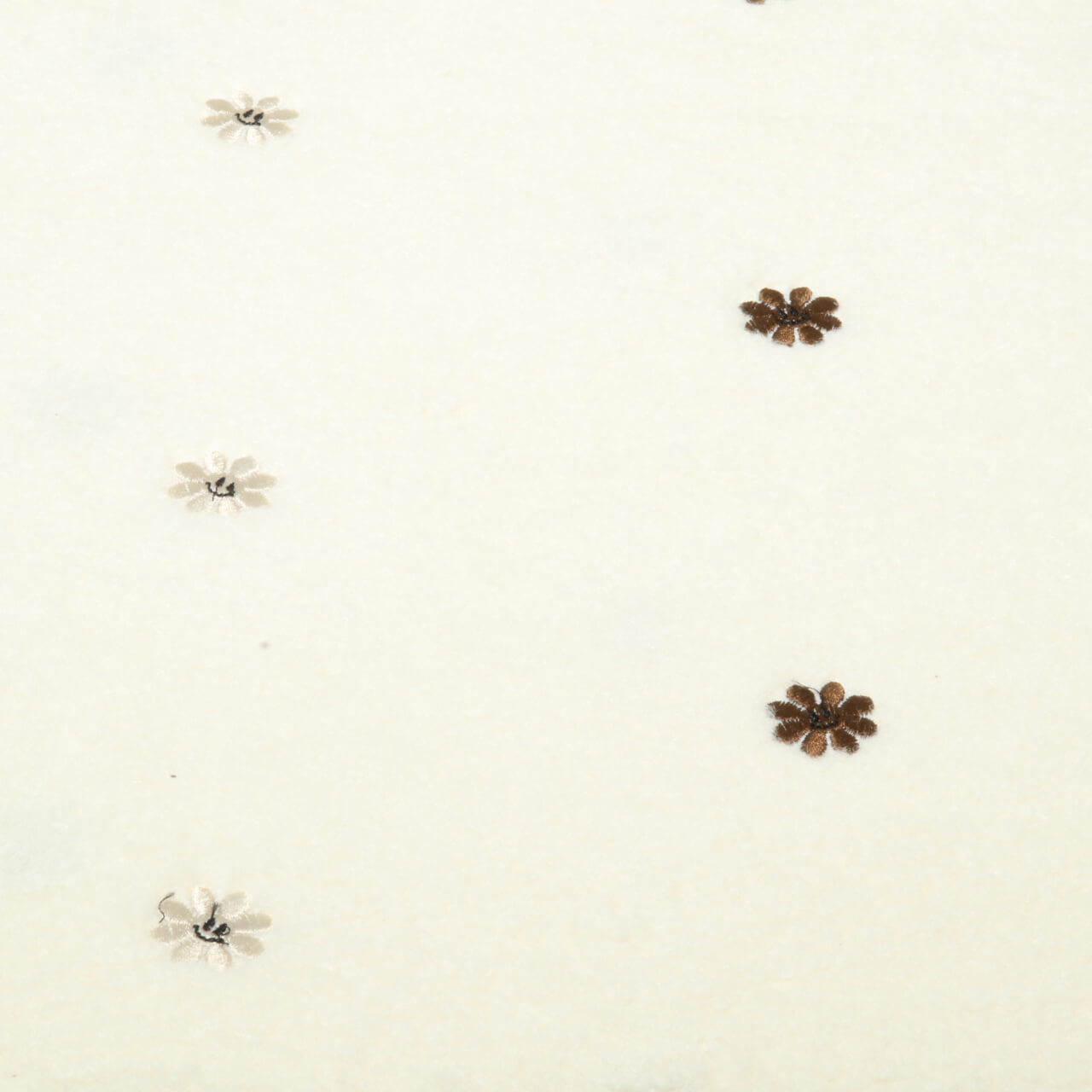 Tento mimořádně měkký plyšový materiál v hřejivé barvě ecru okamžitě vybízí k přitulení. Na nadýchaném chuchvalci jsou rozesety láskyplně vyšité smajlíky a jemné květy v harmonickém odstínu hnědé - hravá kombinace, která vám okamžitě navodí dobrou náladu.