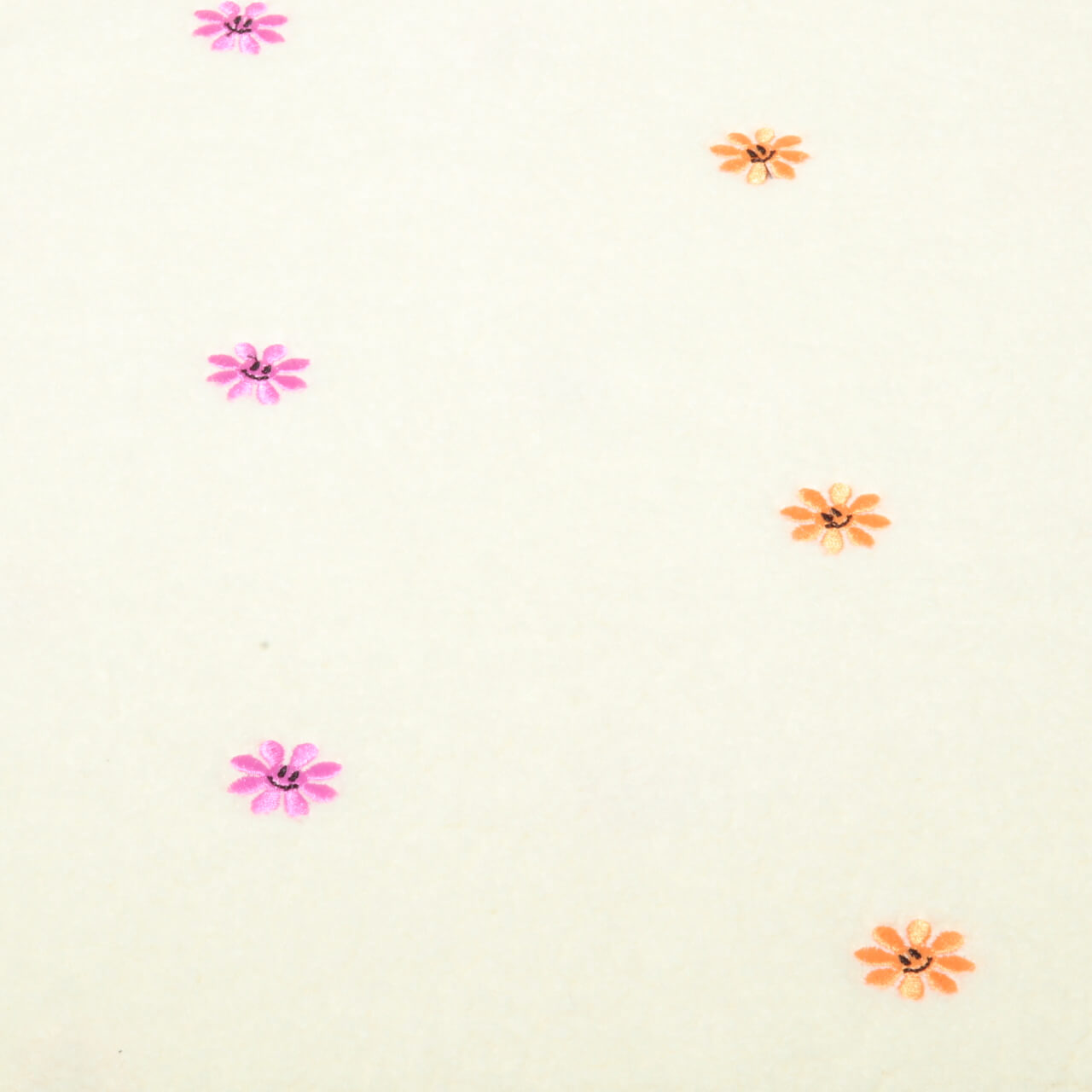 Příjemná, měkká plyšová tkanina s láskyplně vyšitými smajlíky a květinami, které živě vynikají na huňatém pozadí. Teplá barva ecru tvoří dokonalý základ pro veselé motivy v oranžové barvě a dodává látce harmonický a zároveň hravý vzhled.