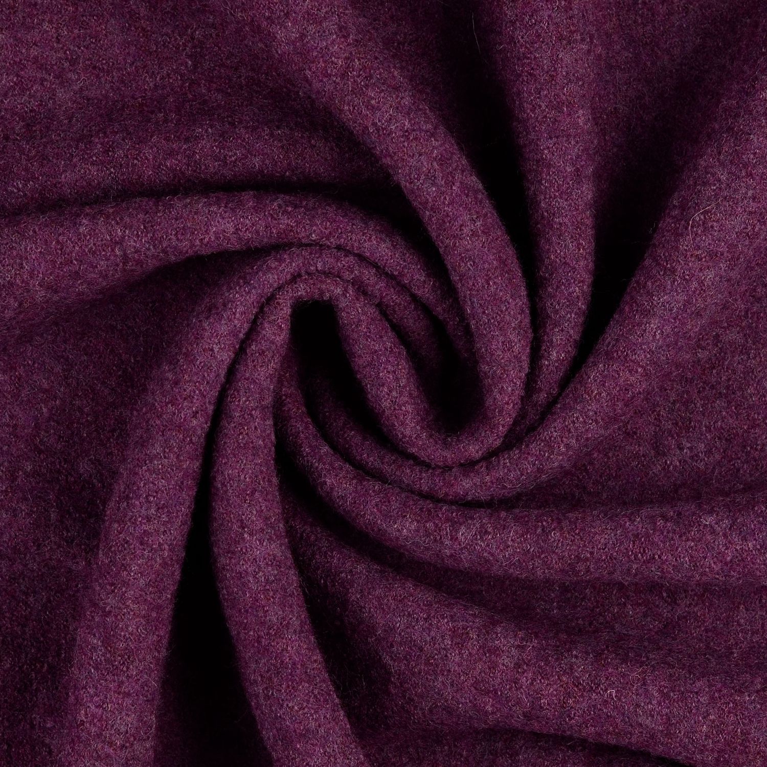 Tento vařený vlněný sukno okouzlí svou elegantní melírovanou optikou a nádherně hustým, lehce vlněným povrchem. Jemná směs vláken vytváří živou hru barev: jemný, modrozelený tón připomíná chladivé mořské vánky, zatímco sytá, hluboká fialová dodává výrazný, elegantní akcent.